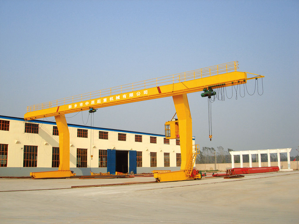 它的金屬結構像門形框架,承載主梁下安裝兩條支腳,可以直接在地面的軌道上行走,主梁兩端可以具有外伸懸臂梁。
